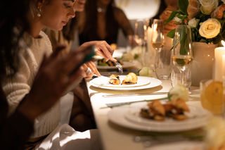 The formal dinner consisted of 3 courses, all of which were croissants. Custom menus were designed along with a drinks list.